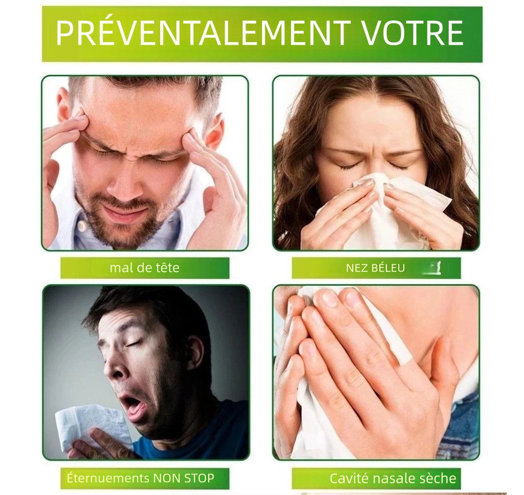 Le spray nasal anti-sinusite agit rapidement pour décongestionner les voies respiratoires et apaiser l’inflammation. Il aide à réduire la pression des sinus, les maux de tête et la sensation d’encombrement, permettant une respiration plus libre dès les premières utilisations.